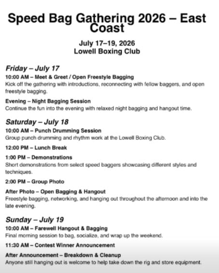 Once Again, There will be TWO Speed Bag Gatherings in 2026!